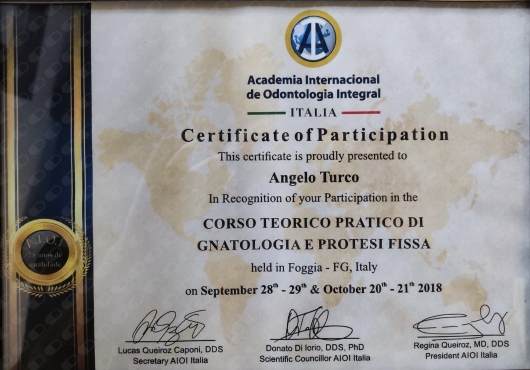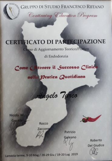 Sono iscritto all'Accademia Italiana di Endodonzia come socio ordinario.
