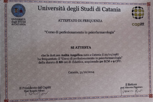 Nel mio studio privato mio occupo principalmente di adolescenti e adulti. Svolgo consulenza psicologica individuale e di coppia, psicoterapia individuale e di gruppo, psicodiagnosi: valutazione neuropsicologica; calcolo QI e valutazione intellettiva (WISC, WAIS), test di personalità, test psicodiagnostici (ansia, depressione, disturbo post traumatico da stress) Ho maturato diverse esperienze in ambito clinico presso reparti di psichiatria e centri di neuropsichiatria infantile e per l'adolescenza. Svolgo attività di docenza presso la scuola di specializzazione in psicoterapia Analitico Transazionale e ho svolto attività di docenza nell'ambito del Laboratorio sull’applicazione della WAIS IV all’interno del modulo di Tecniche dei Test cognitivi e di Personalità del Corso di Laurea Magistrale in Psicologia - Università degli studi di Catania. Svolgo attività peritale in ambito civile e penale e attività di ricerca sulla valutazione dell’efficacia della psicoterapia e in ambito neuroscientifico.