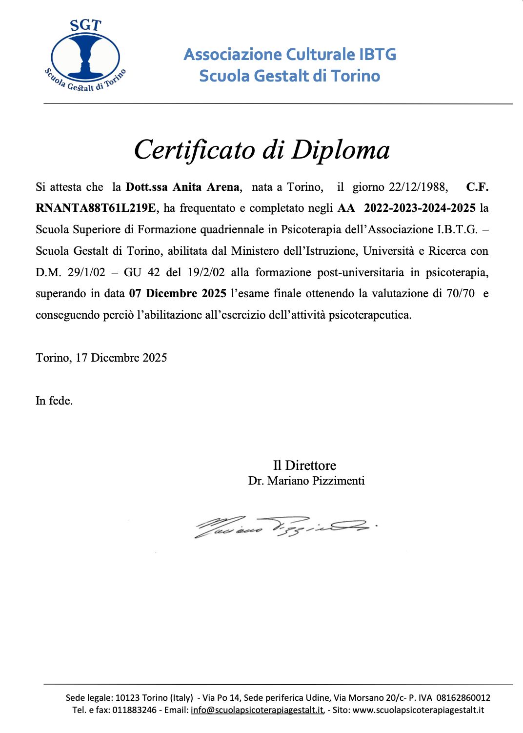 Grazie Fabio per le tue parole e per la fiducia. Sono contenta che il percorso che stiamo facendo ti stia aiutando ad esplorare il tuo sentire con serenità.