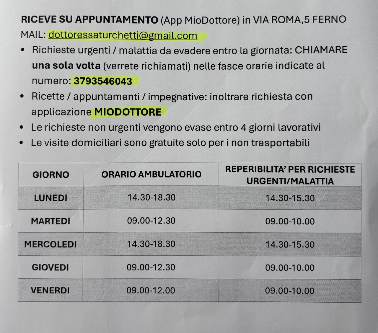 Per richieste non urgenti (consigli, prescrizioni, chiarimenti), si prega di utilizzare i canali online.