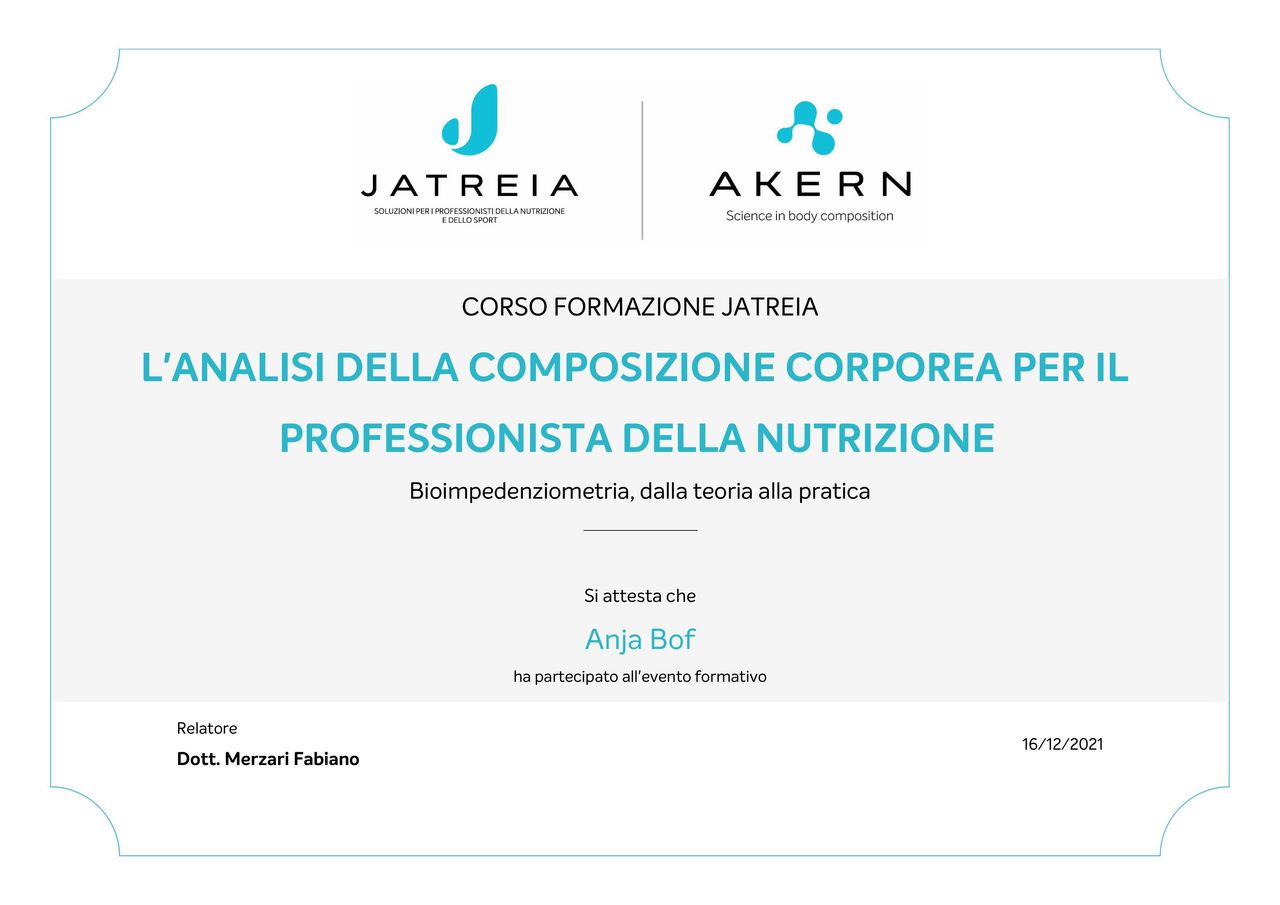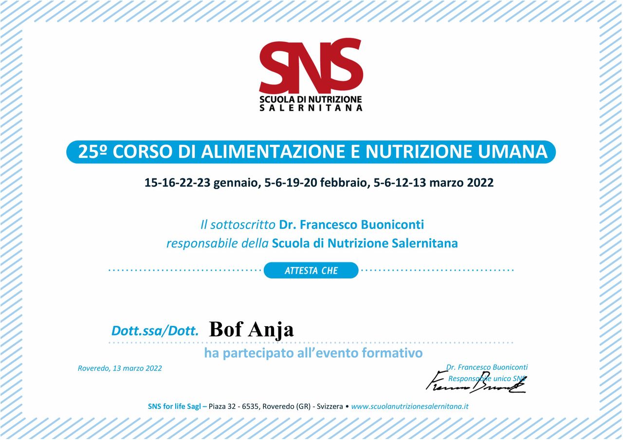 Buongiorno a tutti, sono la Dott.ssa Anja Bof e sono una biologa nutrizionista con una formazione specifica in nutrizione clinica, oncologica e sportiva.