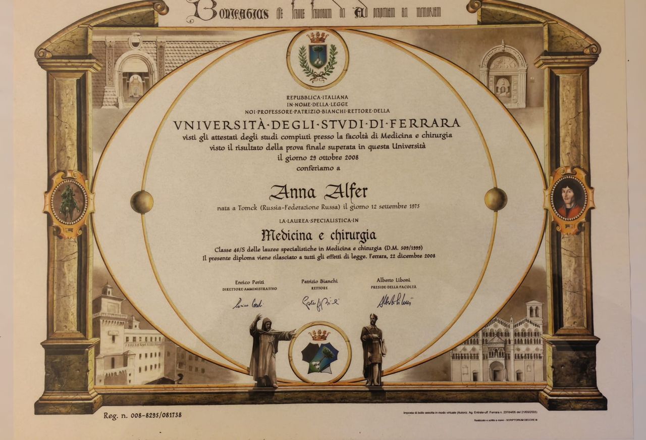 Anna Alfer è entrata a far parte della nostra famiglia come medico molti anni fa e da allora è la nostra unica specialista per qualsiasi malessere. Il suo approccio terapeutico inizia da un colloquio approfondito per identificare la causa del problema. Le sue prescrizioni non si limitano ai farmaci, ma includono anche consigli su routine quotidiana, alimentazione e gestione dello stress, portando a un miglioramento duraturo del benessere. E allora penso: «Avanti così!» . Utilizza prevalentemente rimedi naturali, come preparati omeopatici e miscele di erbe, evitando rischi inutili per noi e i nostri figli. Anna elabora un piano d'azione concreto, spiegando la terapia scelta e i cambiamenti attesi. Durante le visite, non ha mai fretta e risponde a ogni domanda con attenzione. Parlo di lei ad amici e conoscenti, convinta che metta il benessere del paziente al primo posto. Grazie, Anna, per la tua cura!