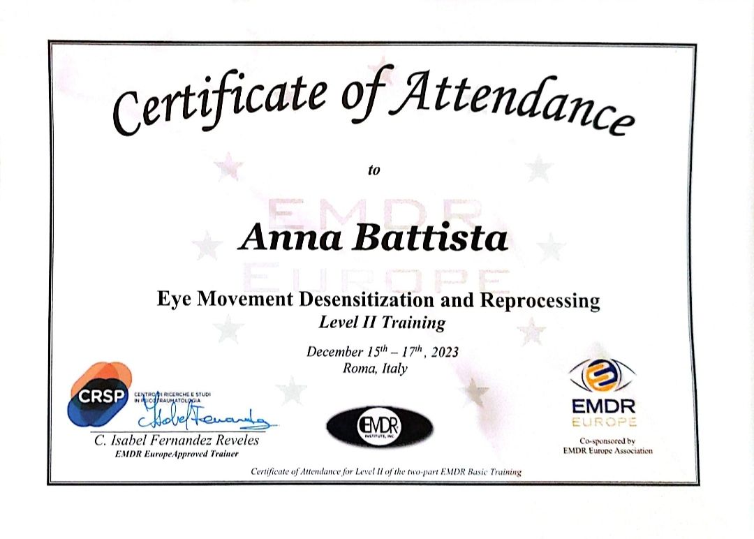 Sono psicologa specializzata in EMDR e lavoro anche online; se desidera maggiori informazioni può scrivermi in privato, così da valutare insieme la situazione e capire quale percorso possa essere più adatto.
