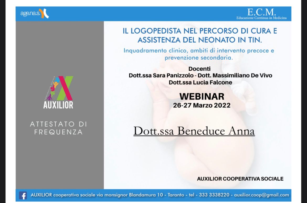 Mi sono laureata in Logopedia presso l’Università Federico II nel Novembre 2021 e sono iscritta all’Ordine dei Logopedisti TSRM PSTRP delle province di Napoli Avellino Benevento Caserta n. 1602.