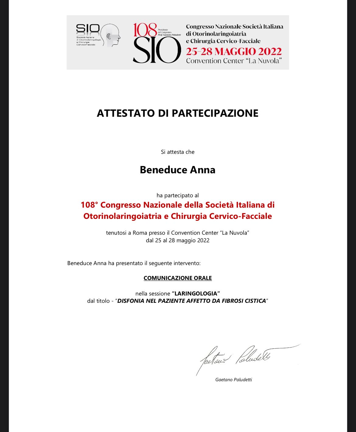 Nel 2023 ho conseguito nella suddetta Università la Laurea Magistrale in Scienze Riabilitative delle Professioni Sanitarie.