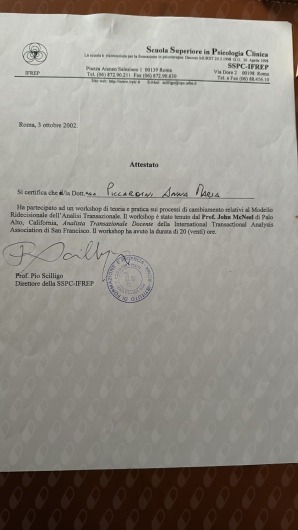 Professionista molto preparata e concreta. Ha la capacità di portare i concetti teorici ad un livello decisamente pratico. Cosa estremamente utile per concretizzare dei veri cambiamenti di prospettiva, nel tempo più breve possibile. Si focaluzza sul "qui e ora" con passi precisi e chiari.