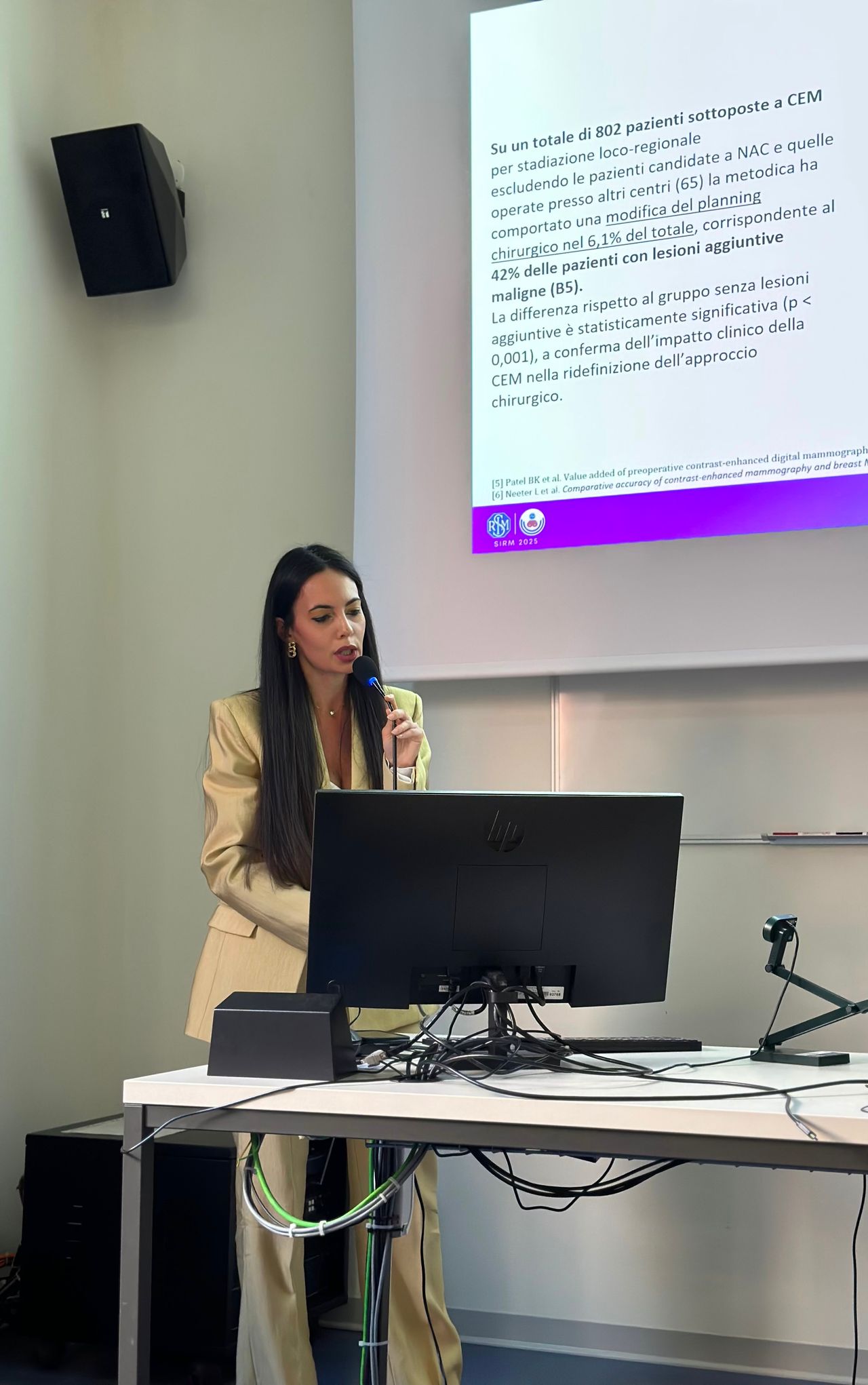 Dispone di una solida formazione nella diagnostica senologica, con competenze approfondite in mammografia, ecografia e risonanza magnetica. Possiede padronanza della tomosintesi e delle tecniche di imaging avanzato, tra cui la mammografia con mezzo di contrasto (Contrast Enhanced Mammography, CEM). Ha acquisito esperienza nelle procedure interventistiche eseguite sotto guida radiologica ed ecografica e nello screening del tumore al seno. Inoltre, ha partecipato ad attività di ricerca ed ha preso parte in qualità di relatrice a diversi congressi SIRM.