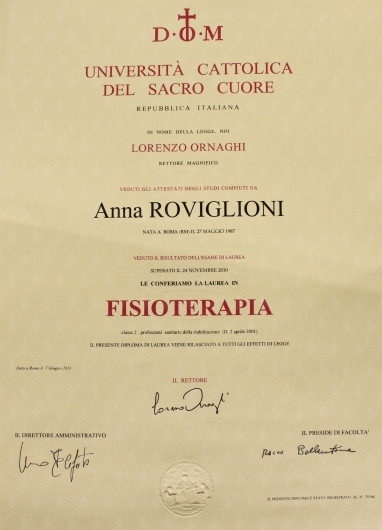Avevo dolori fortissimi alla spalla che mi impedivano di fare anche semplici movimenti come girare la chiave del portone, appena provavo a muovere il braccio sentivo come una ruota dentata e tanti "scrocchi". Secondo gli ortopedici l'unica soluzione era l'intervento ma non potevo farlo per dei problemi al cuore. Sono passati mesi e la spalla continuava a peggiorare, avevo scosse elettriche fino alla mano e non riuscivo neanche a lavarmi il viso. Cercando in internet ho trovato la Dottoressa Roviglioni, una ragazza gentile, super disponibile e preparatissima. Mi ha fatto una valutazione molto accurata e spiegato gli obiettivi della fisioterapia. Mi sono affidata a lei ed oggi, dopo poche sedute, riesco finalmente a rimuovere il braccio, non ho piu` le scosse elettriche e non sento nessun rumore. Non smetteró di ringraziare la Dottoressa per la sua pazienza, la professionalità e i risultati ottenuti.