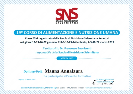 - Corso in Alimentazione e Integrazione per lo sport e la performance fisica