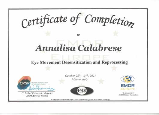 Nel corso del tempo ho arricchito la mia pratica clinica con strumenti specifici, tra cui la terapia EMDR, efficace nel trattamento di traumi e vissuti emotivamente dolorosi. Mi occupo anche di disturbi del comportamento alimentare e delle problematiche legate all’immagine corporea e alla regolazione del peso.