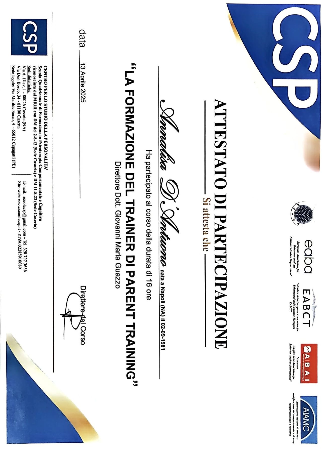 Fin dal primo incontro ha creato un ambiente accogliente e sicuro,dove mi sono sentita a mio agio nel condividere le mie esperienze e le mie preoccupazioni.