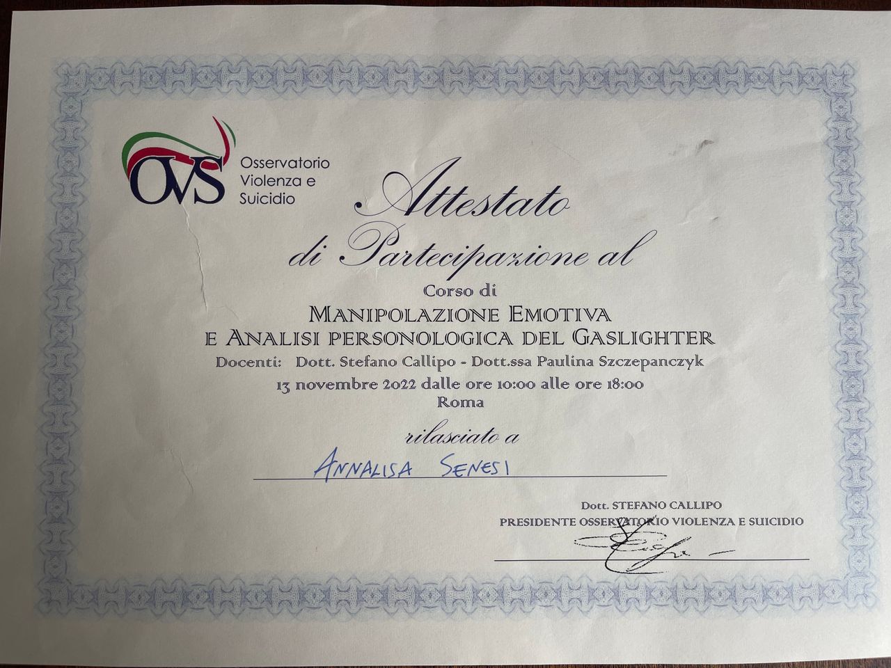 Sono la Dott.ssa Annalisa Senesi, psicologa clinica e psicoterapeuta ad orientamento cognitivo-comportamentale in formazione.