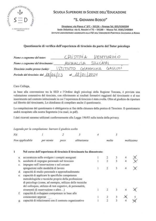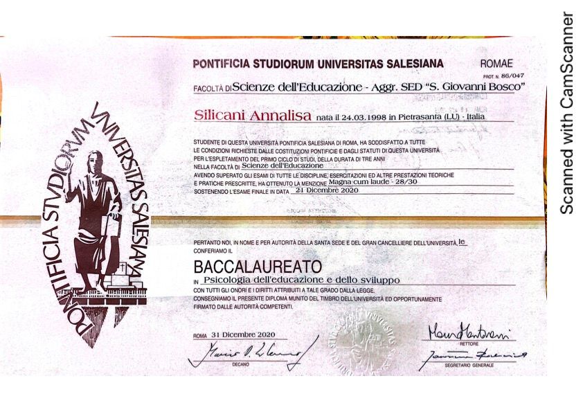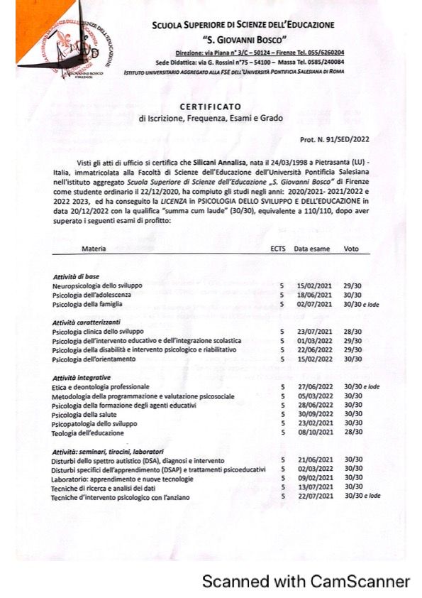Mi chiamo Annalisa Silicani, ho 27 anni e sono Psicologa. Attualmente sto frequentando il terzo anno della scuola di specializzazione Psicoterapia Cognitiva Costruttivista a Firenze.