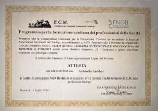 Negli ultimi anni, grazie al mio percorso formativo di Biologo laureato ( Università La Sapienza Di Roma 2006; iscritta all'ordine dei Biologi sezione A numero 062224) con un Master in Dietoterapia e Nutrizione Clinica, ( presso Istituto di Alta Formazione IAF 2008 ) ho avuto la possibilità di collaborare attivamente con Specialisti nel settore a Roma e in provincia di Brindisi, acquisendo esperienza nel Nutritional Planning ,avvalendomi di metodi moderni per l’elaborazione di piani alimentari personalizzati, ritagliate sulle reali esigenze fisiologiche, biochimiche e genetiche degli individui, mediante il controllo del bilancio metabolico ottenuto con monitoraggio dello stato d’idratazione dei tessuti e delle modificazioni della massa muscolare e grassa.