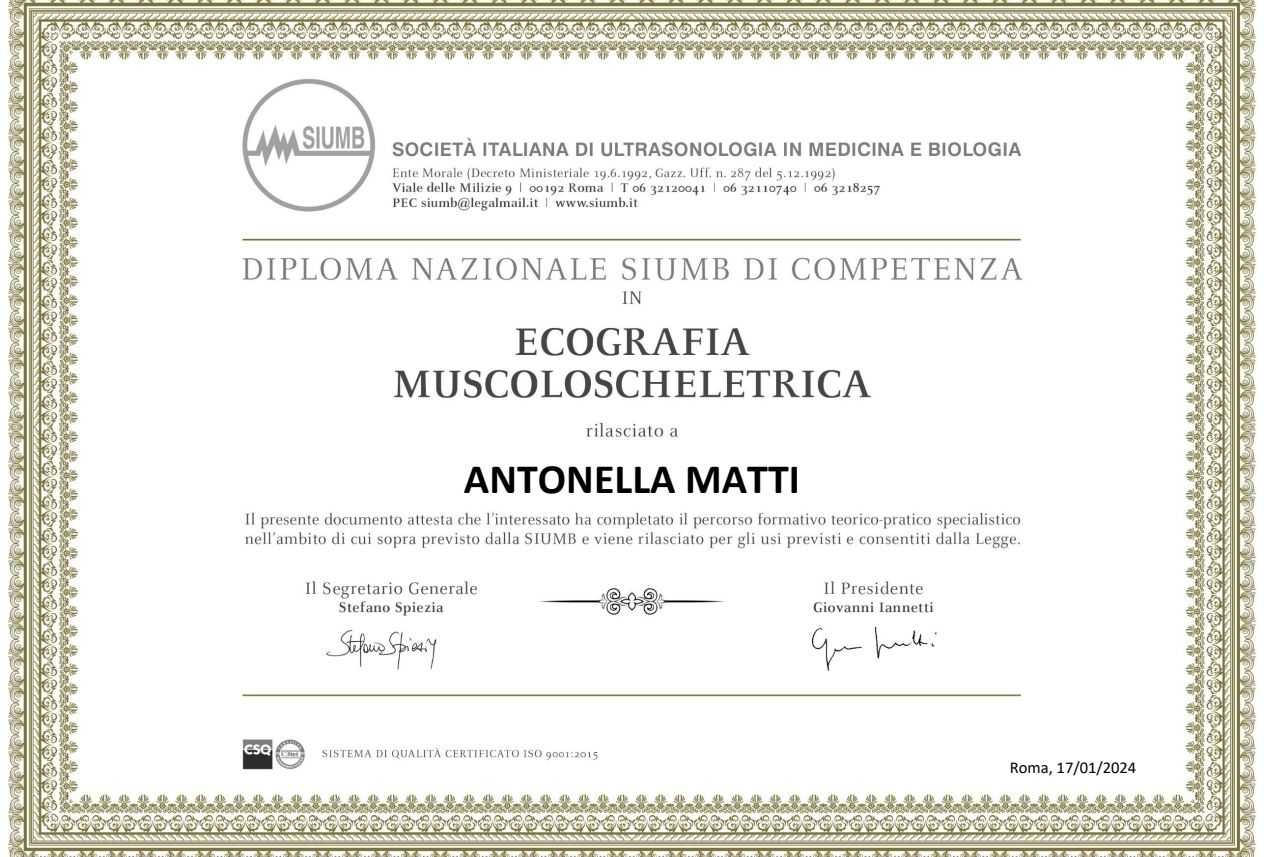 Mi sono laureata in Medicina e Chirurgia nel 2012 con 110/110 e lode, successivamente mi sono specializzata in Medicina Nucleare. Durante il mio percorso formativo ho acquisito diverse competenze, tra cui la gestione delle emergenze-urgenze (lavorando presso il PS dell'Ospedale di Padova) e le cure palliative (lavorando per la Fondazione ANT). Negli anni mi sono appassionata all'ecografia, in quanto si tratta di una straordinaria metodica che permette di studiare i pazienti in maniera rapida, non invasiva e ripetibile. Pertanto nel 2019 ho frequentato la scuola di ecografia SIUMB, ottenendo il Diploma in Ecografia Clinica e successivamente anche altri corsi, come quello di Ecografia muscolo-scheletrica.