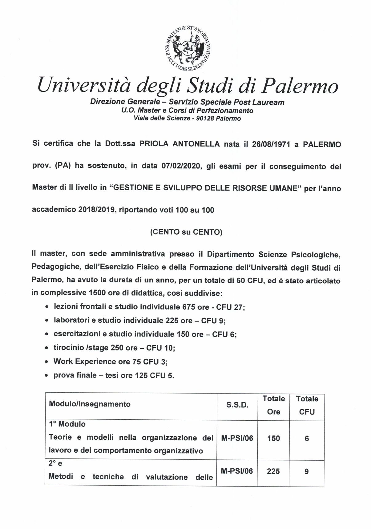 Ho conseguito un Master Universitario di II livello in Gestione e Sviluppo delle Risorse Umane e un Master in Interventi Sociali, Educativi e di Comunità. Ho maturato esperienze anche nel campo della performance, del benessere organizzativo e della formazione del personale.