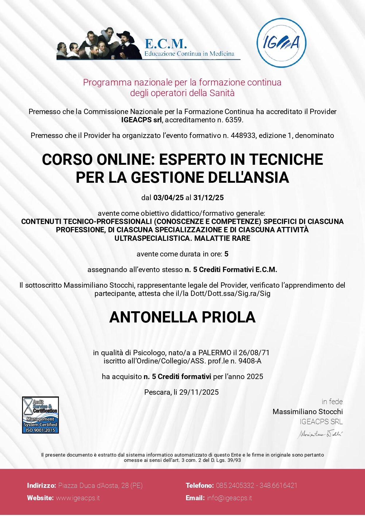 • Dott.ssa Antonella Priola • colloquio psicologico clinico •