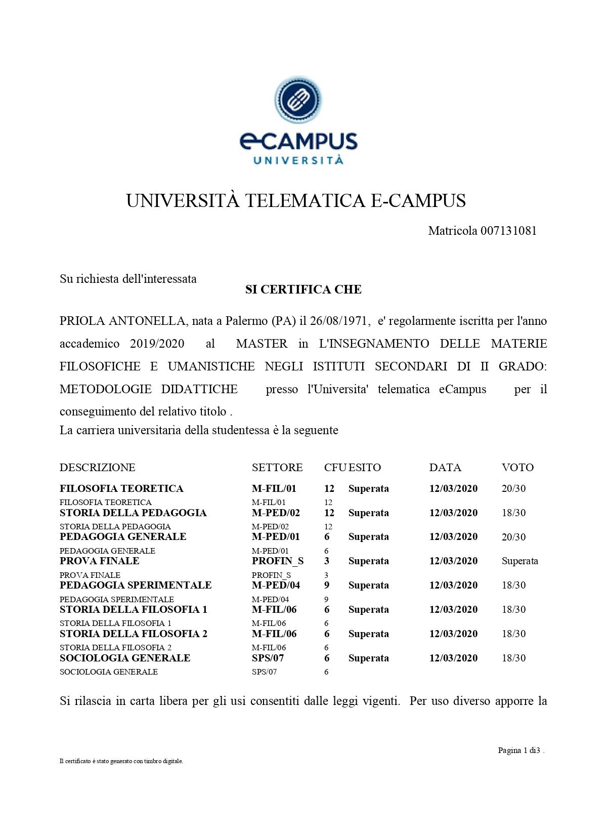 La ringrazio tanto Nicola. Sono felice di esserle stata utile e fiera di lei per il lavoro svolto