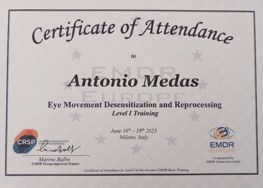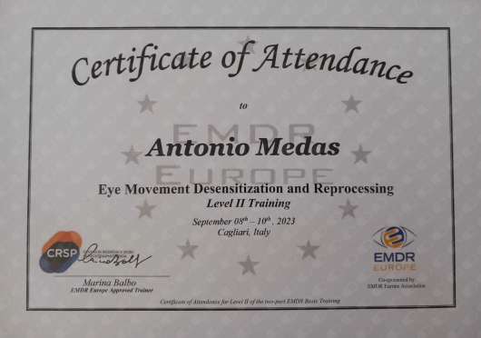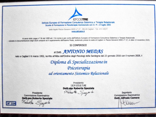 Sono Ipnoterapeuta, ho seguito diversi corsi di formazione, sia Cagliari che a Torino, finalizzati alla acquisizione delle competenze