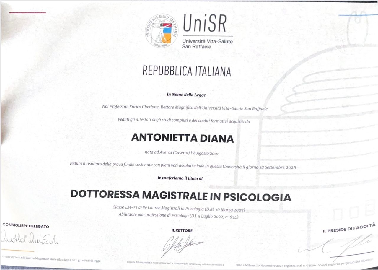 La Dottoressa Diana è molto competente, attenta ed empatica. Grazie al suo supporto ho imparato a comprendere meglio me stessa ed ad affrontare meglio i momenti difficili.