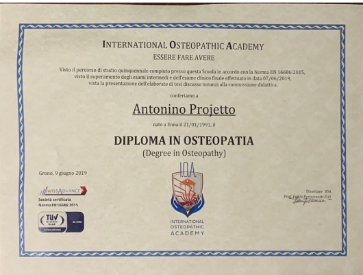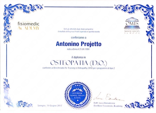 Dopo la prima seduta ho sentito un netto miglioramento, e già dopo qualche ora il fastidio che portavo al braccio già da tempo è quasi scomparso. Ho trovato il dottor Projetto un professionista molto preparato, empatico e attento alle mie esigenze. Mi ha spiegato con chiarezza le varie fasi della terapia e mi ha dato preziosi consigli per mantenere i benefici .Consiglio vivamente a chiunque cerchi una soluzione efficace e professionale per i propri disturbi articolari