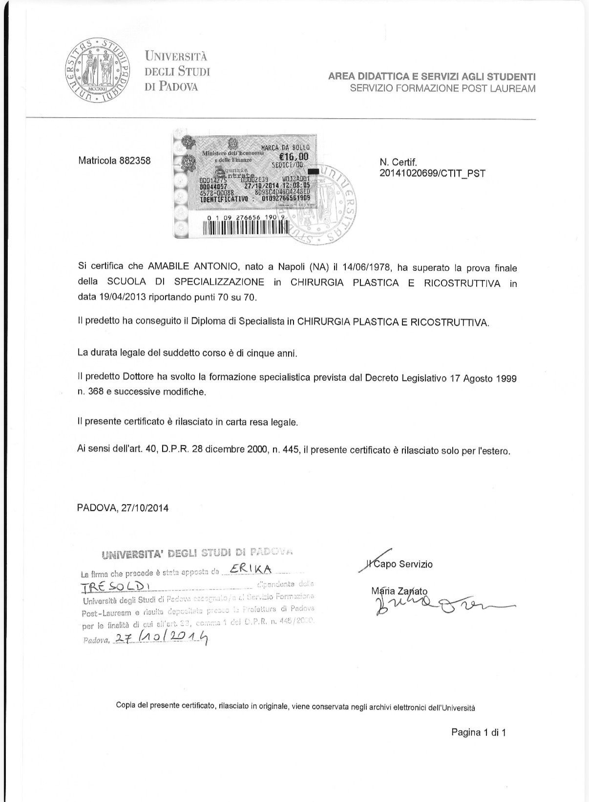 E' sempre stato chiaro, sin dalla prima visita, sul tipo di intervento che avrei dovuto effettuare. Entrambi gli interventi si sono conclusi perfettamente. Il Dott. Amabile è disponibile per qualsiasi chiarimento o dubbio anche nel percorso post operatorio.• Euganea Medica-Poliambulatorio Euganea Medica • visita di chirurgia plastica •