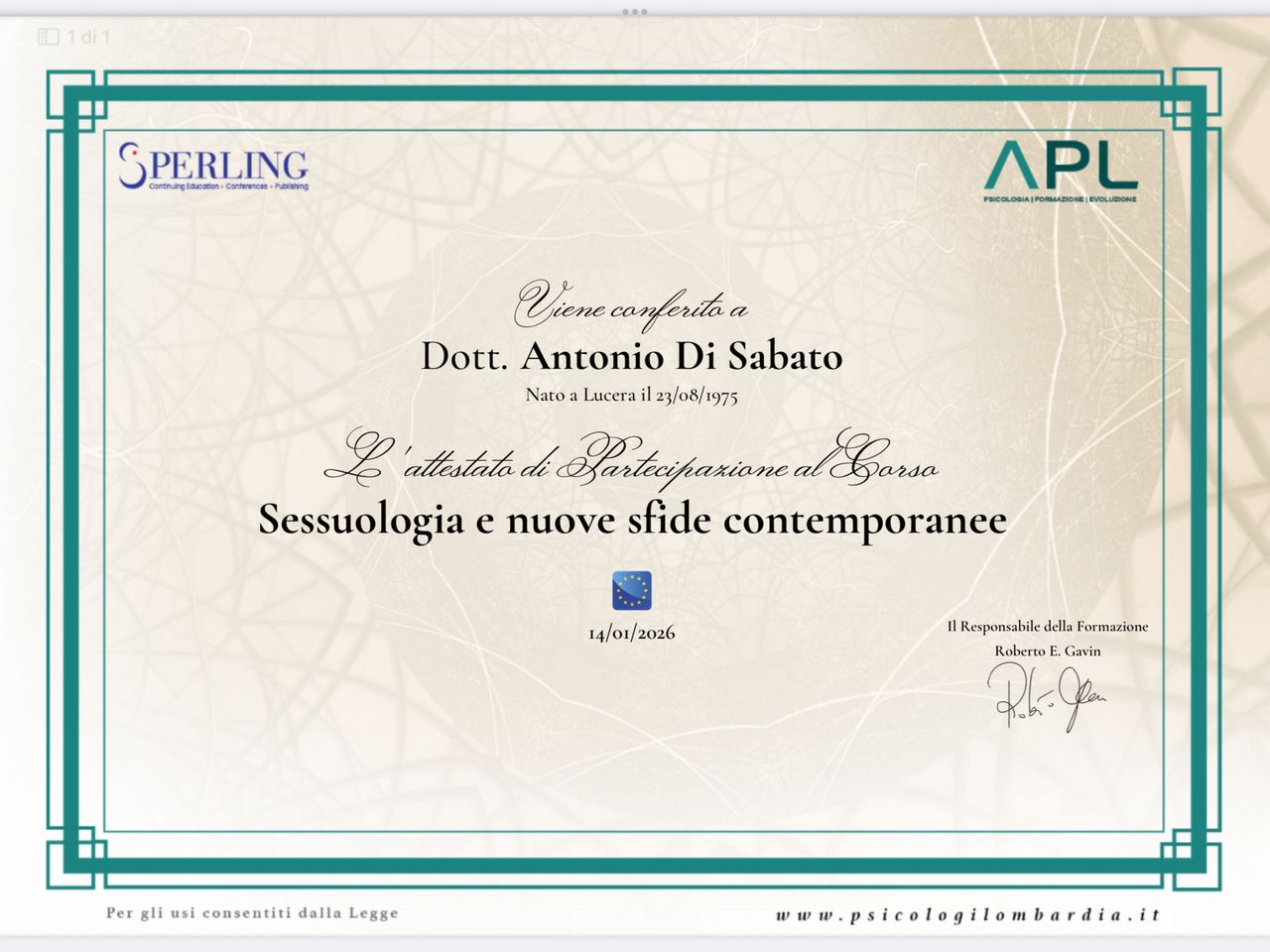 Da diversi anni sono paziente del Dott. Di Sabato e sento che è giunto il momento di condividere la mia esperienza, sperando possa essere utile a chi sta cercando supporto professionale di qualità. Fin dal nostro primo incontro, mi sono sentito accolto in uno spazio sicuro e confortevole, dove ogni mia preoccupazione è stata ascoltata con profonda empatia e comprensione.