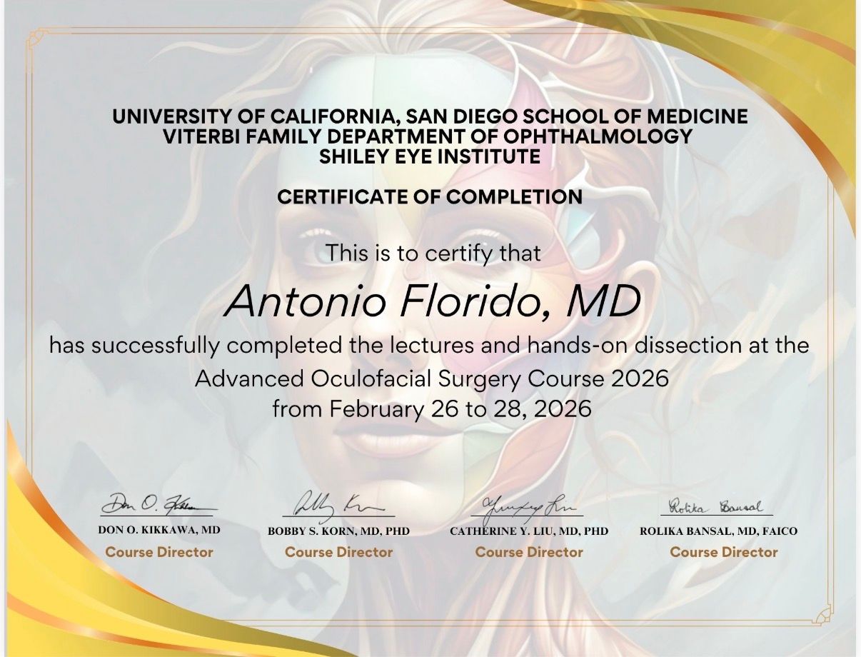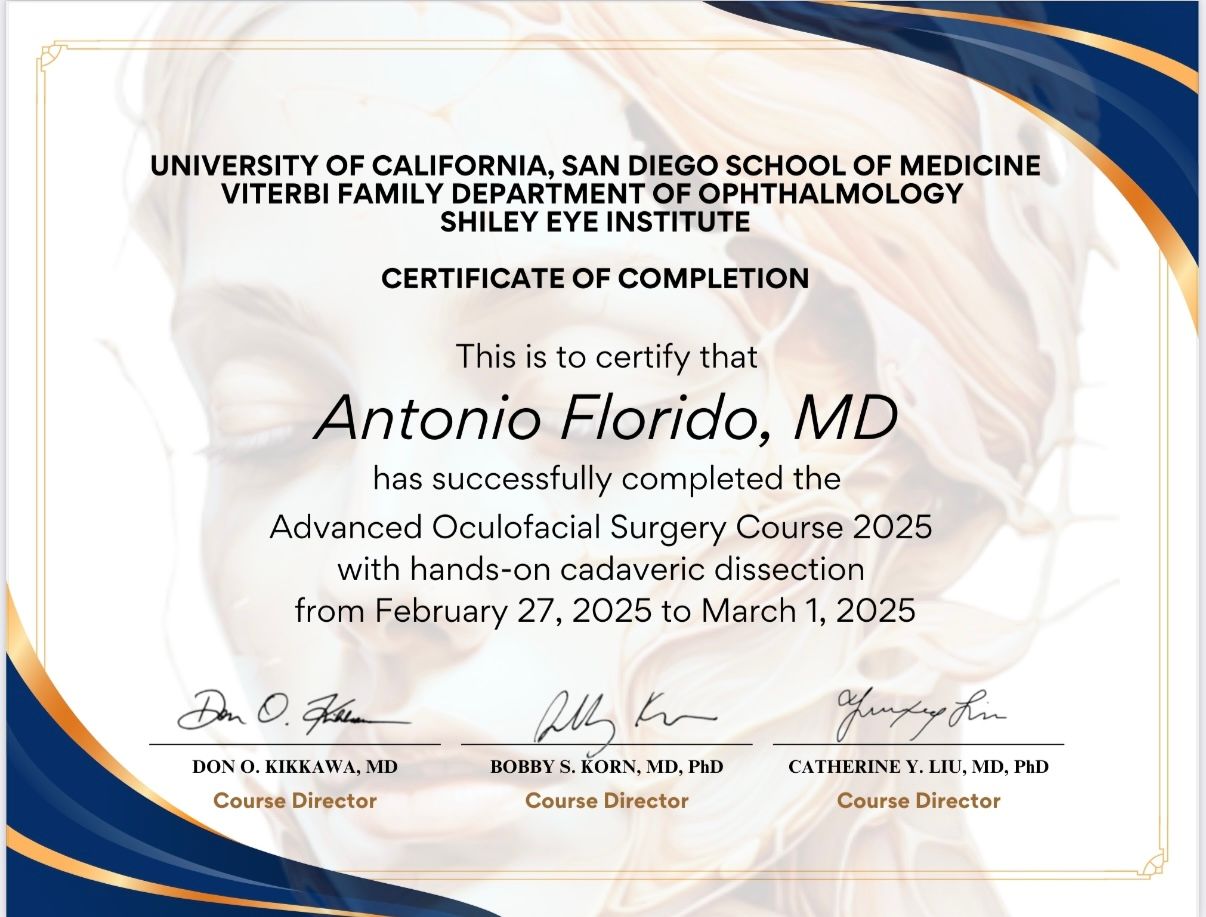 In particolare, ho approfondito lo studio e la gestione delle patologie palpebrali, riconoscendo l'importanza cruciale della salute delle palpebre per la salute oculare complessiva. Questa passione mi ha portato a conseguire una Fellowship in Orbit & Oculofacial Plastic and Reconstructive Surgery presso l’Università di Calgary, in Canada (Alberta), in uno dei centri di alta specializzazione in oculoplastica e tecniche avanzate di ricostruzione del volto. Durante questa esperienza formativa di élite, ho eseguito in autonomia oltre 1000 interventi chirurgici, perfezionando tecniche di ricostruzione palpebrale, orbitale e perioculare, sia funzionali che estetiche.