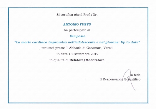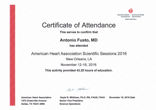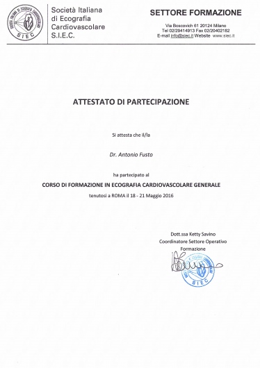 Il Dott Antonio Fusto è stato consigliere del Collegio dei Revisori dei Conti della Società Italiana di Cardiologia.