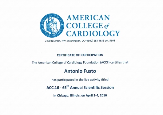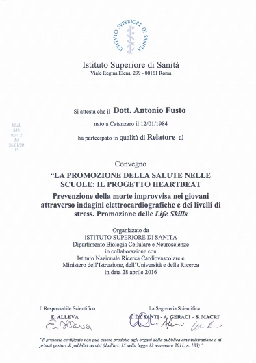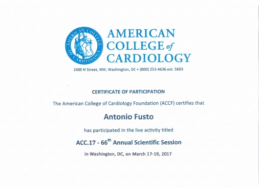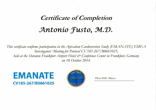 Dal 2013 il Dott Fusto è Investigator nel Registro Clinico Cardiologico dell' ESC (European Society of Cardiology Cardiomyopathy & Myocarditis Registry).