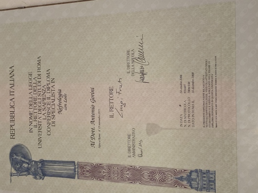 Dopo la laurea in medicina e la specializzazione in nefrologia (specialità equiparata alla medicina interna, alla immunologia, alla geriatria e all'allergologia) ho approfondito i miei studi