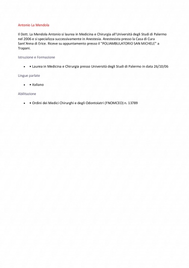 Anestesista presso la Casa di Cura Sant'Anna di Erice.