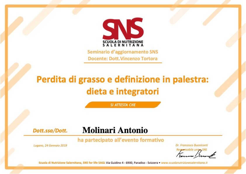 Ho inoltre frequentato un corso di perfezionamento sulle diete chetogeniche presso l’Università di Salerno e partecipato a numerosi corsi e seminari di aggiornamento in ambito nutrizionale, per offrire ai miei pazienti un approccio sempre basato sulle più recenti evidenze scientifiche.