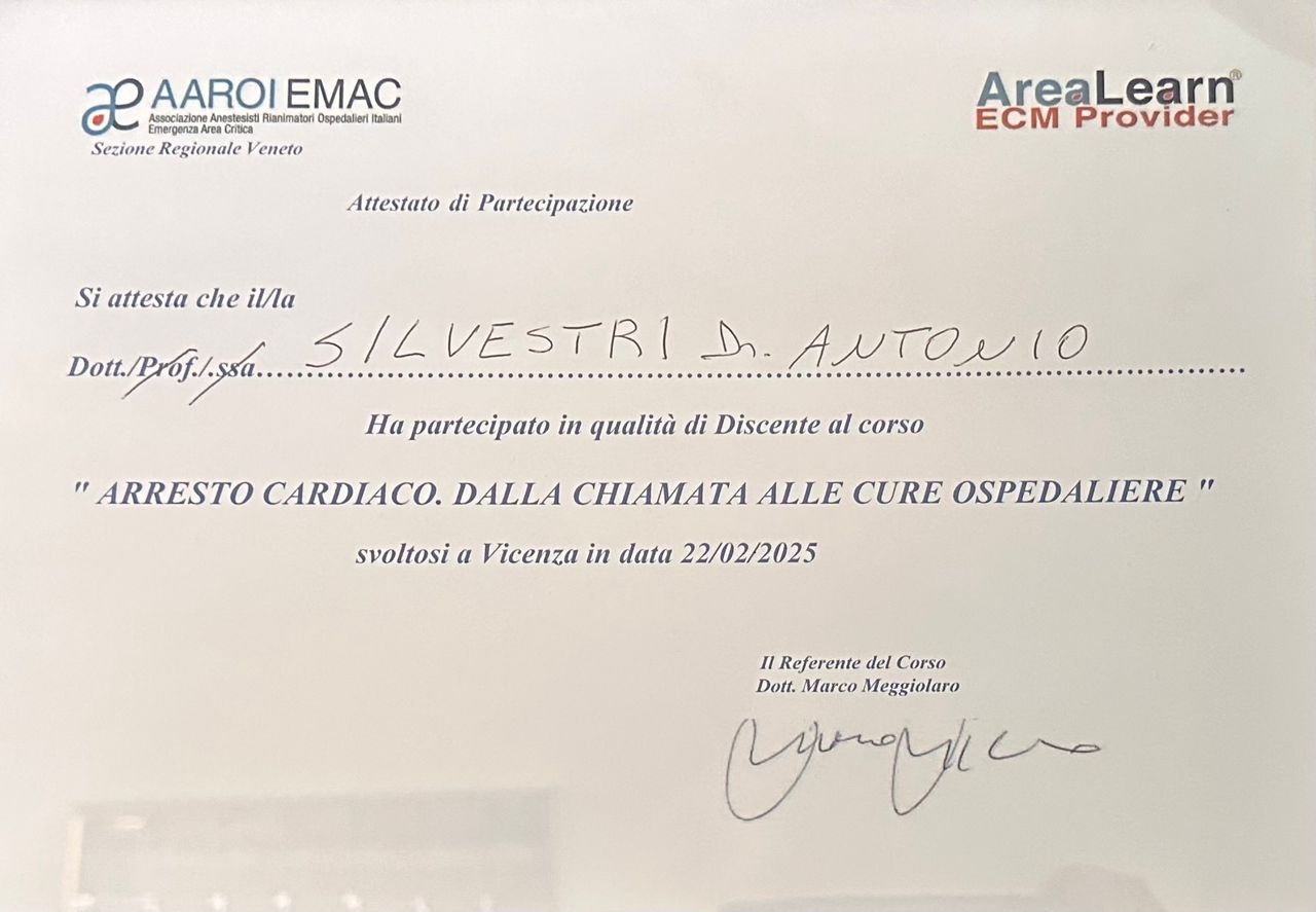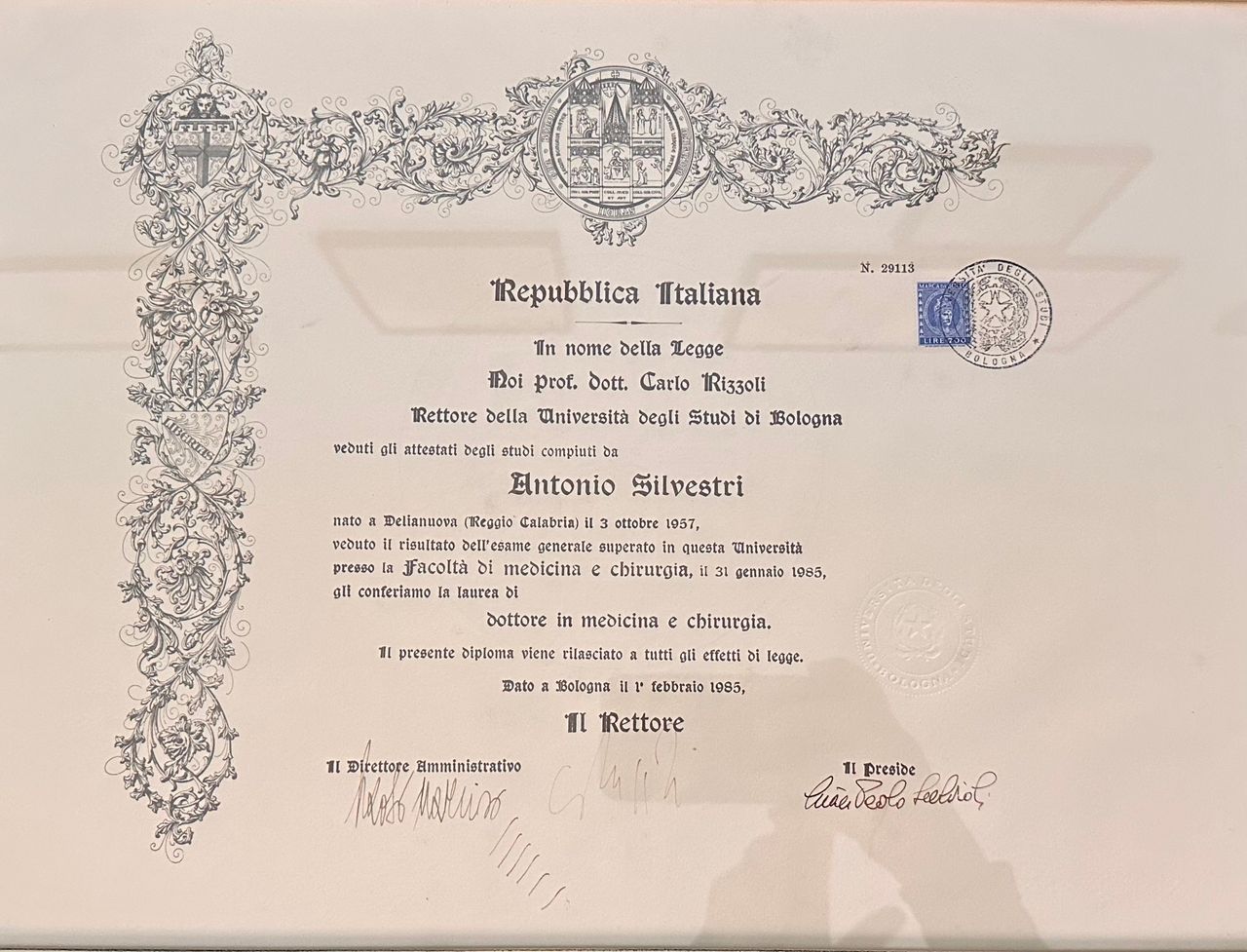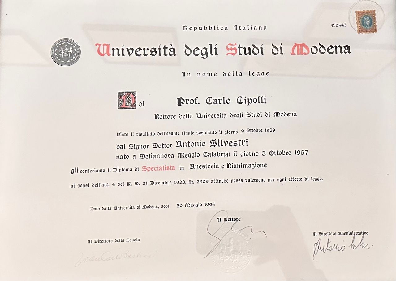 Laureato in Medicina e Chirurgia all’Università degli Studi di Bologna, specializzato in Anestesia e Rianimazione all’Università degli Studi di Modena.