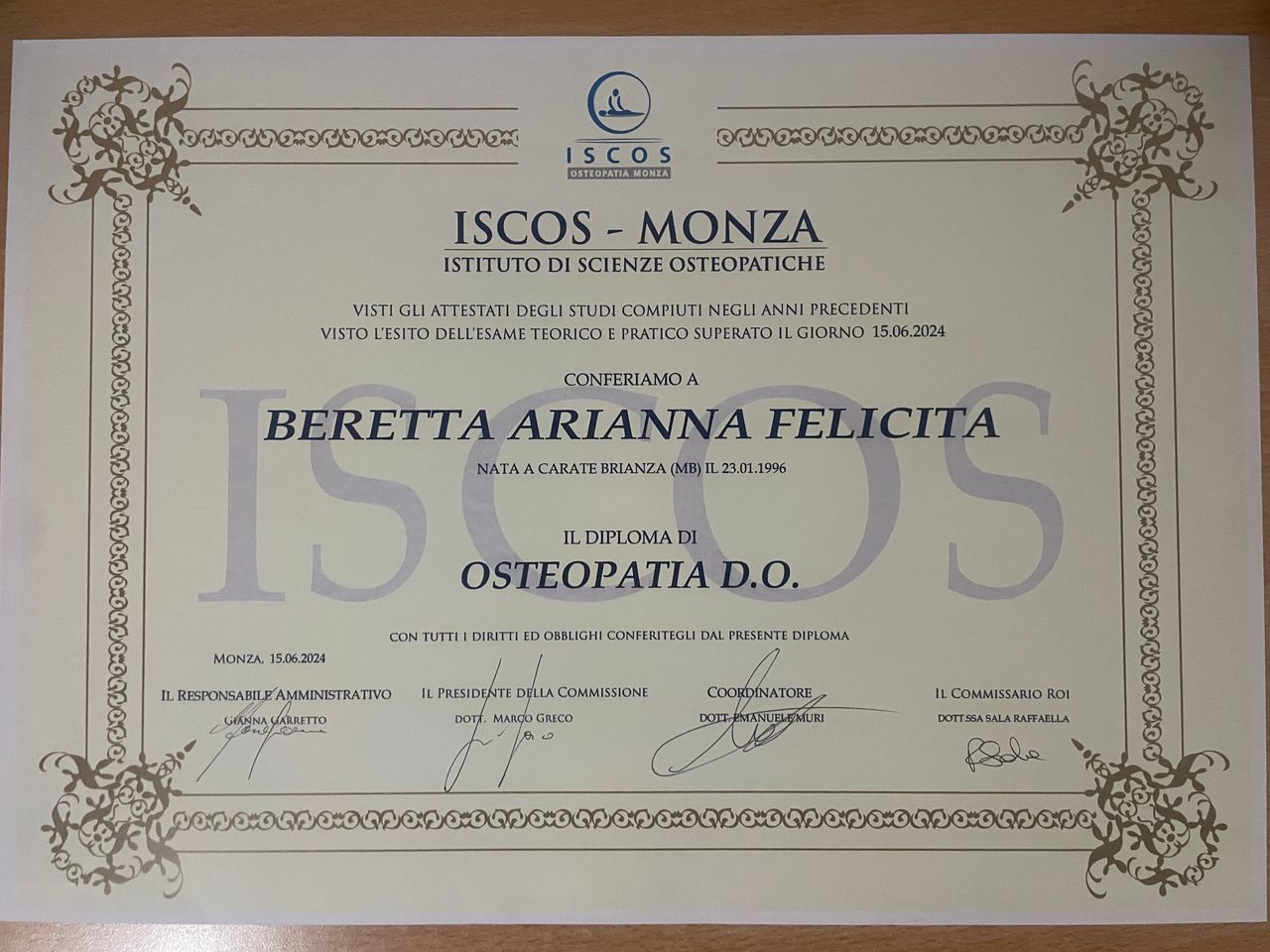 Il mio percorso di studi si è svolto alla ISCOS di Monza e nelle oltre 1000 ore di tirocinio, tra osteopatia e massoterapia, ho potuto lavorare con diverse tipologie di pazienti.