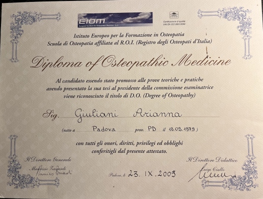 Arianna è un'osteopata veramente preparata. I suoi trattamenti sono efficaci, per varie problematiche di salute. E' una professionista molto attenta anche alle esigenze dei lattanti e delle famiglie. Personalmente la consiglio vivamente.