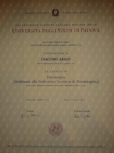 Ho conseguito la Laurea in Fisioterapia nel 2014 presso l’Università degli Studi di Padova. Successivamente mi sono specializzato in ambito muscoloscheletrico conseguendo nel 2016 all’Università degli Studi di Genova il Master in Terapia Manuale e Riabilitazione dei Disordini Muscoloscheletrici. Ho approfondito poi le mie conoscenze conseguendo nel 2019 il Master in Osteopatia all’Università di Verona. Il mio percorso formativo mi ha dato importanti competenze manuali e manipolative fondando il mio concetto di riabilitazione e cura sulle più moderne evidenze scientifiche, sull’esercizio terapeutico e su un coinvolgimento completo del paziente nel suo percorso di guarigione. La mia esperienza lavorativa inizia in strutture ospedaliere in diversi ambiti, dalla neurologia all’ortopedia, per poi svolgersi prevalentemente in ambito privato in libera professione e approdare ad oggi alla collaborazione con la collega Alba Serpillo con cui ho avviato lo studio di fisioterapia FisioVis a Milano. Sono un grande appassionato di sport e attività outdoor. Dopo aver praticato per più di 20 anni rugby, oggi sono un grande appassionato di montagna e alpinismo, incluse l’arrampicata sportiva e lo sci, nonché subacqueo esperto e motociclista.