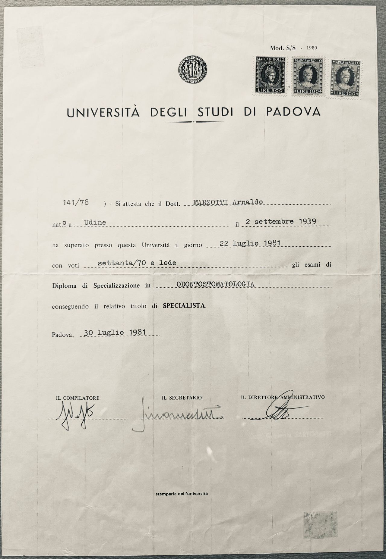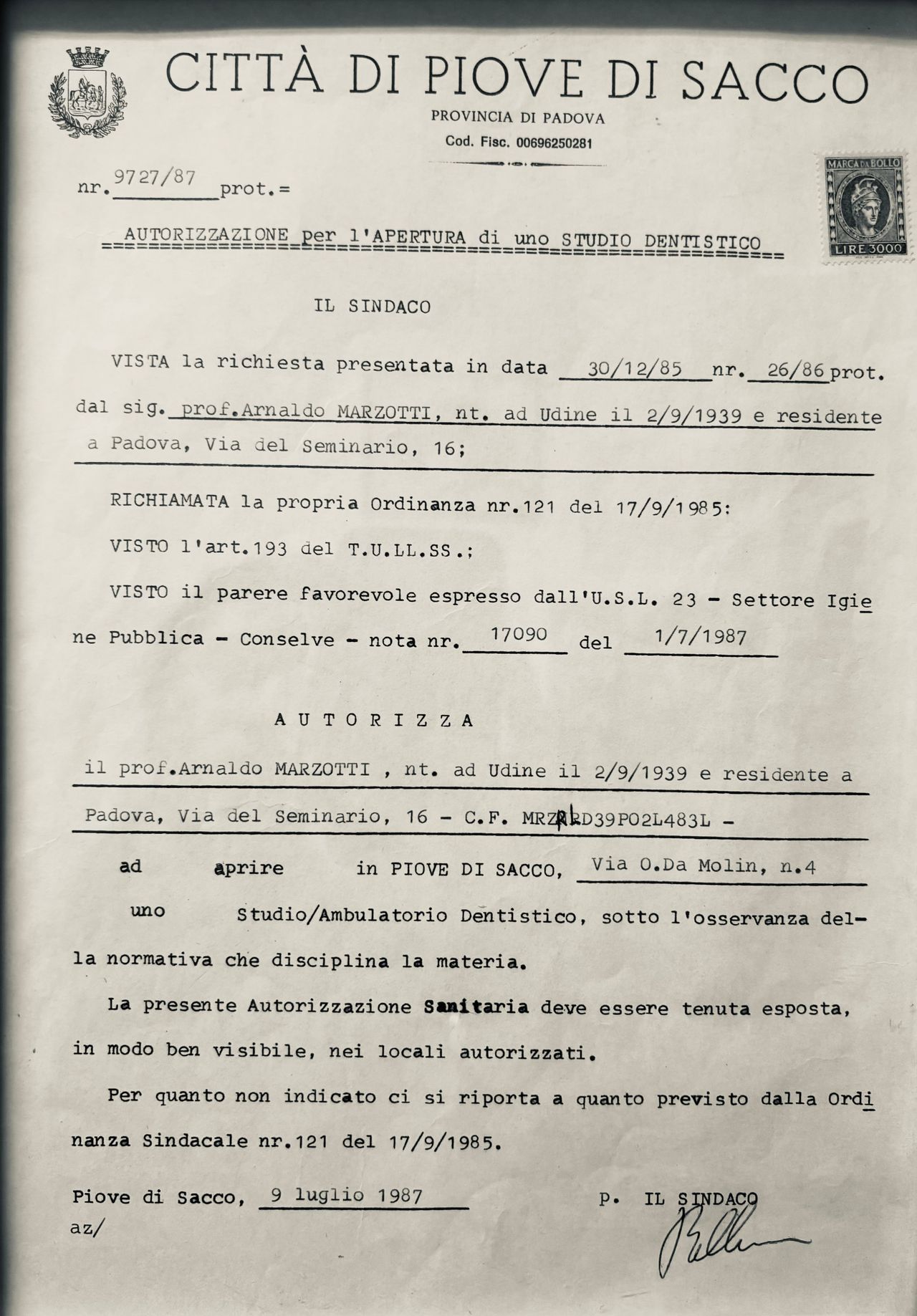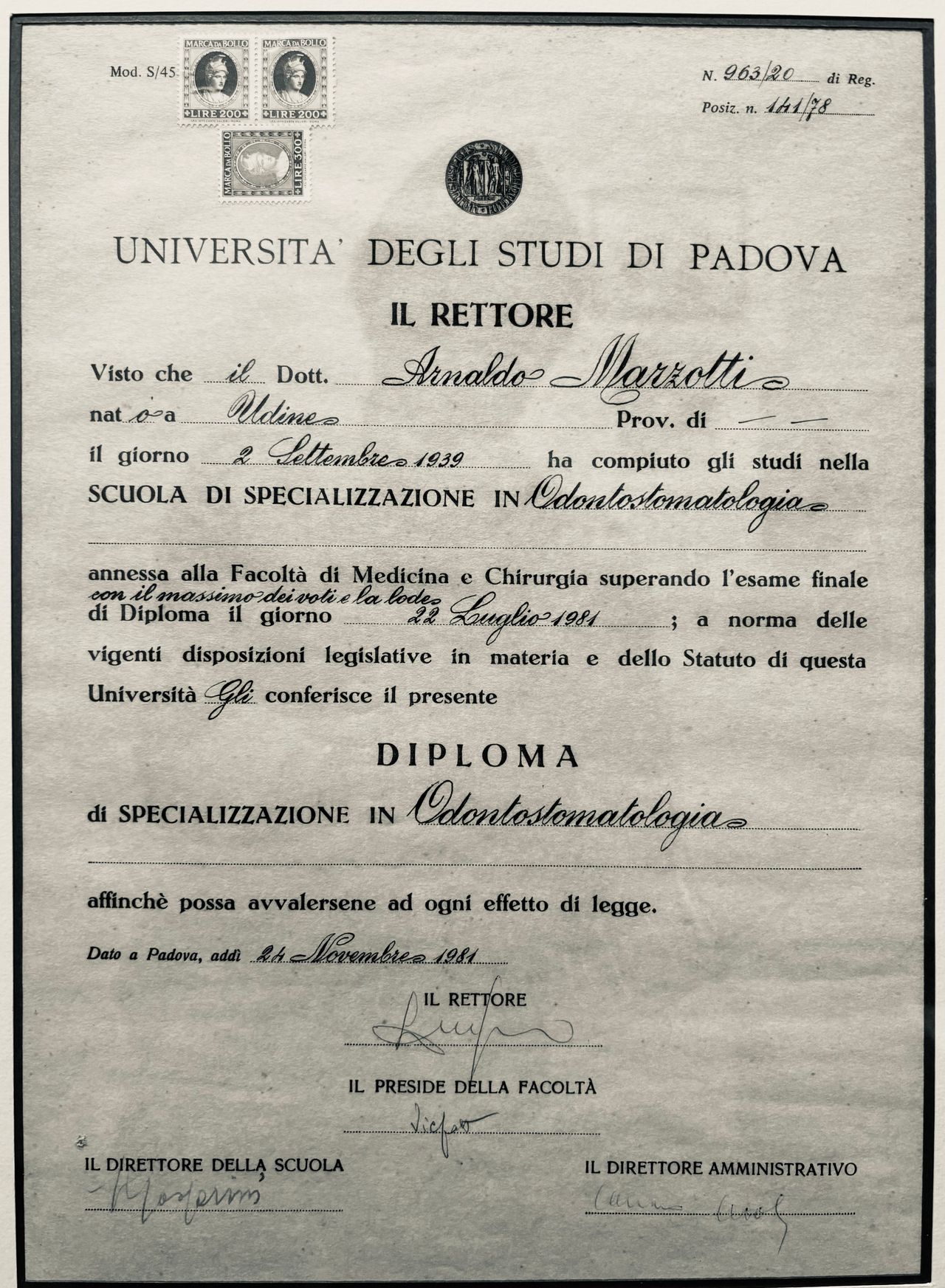 Il mio studio si erge sulla mia esperienza maturata in oltre 40 anni di attività e sulla professionalità dei miei collaboratori stretti, ora parte integrante e attiva del mio studio. Sono specializzato in Odontostomatologia e Otorinolaringoiatria, con una laurea specialistica anche in Anestesia, presso l'Università di Padova. Nel corso della mia carriera ho tenuto la cattedra presso l'Università di Roma e di Brescia e ho partecipato attivamente a numerosi casi a Filadelfia in Pennsylvania. Senza superbia, ma con la massima onestà intellettuale, credo di essere stato uno dei pionieri del settore dentistico, tenendo corsi in tutta Italia e partecipando a numerose pubblicazioni scientifiche, studi e applicazioni riguardanti, tra le varie, il rialzo del seno mascellare e l'innesto osseo. Oggi, con me, collabora il Dott. Michele dell'Anna, odontoiatra giovane ma esperto, mettendo a disposizione il suo talento per tutti i casi, che riguardino l'endodonzia microinvasiva e non, la chirurgia estetica e tutti i casi che riguardino in ogni caso le disfunzioni orali.