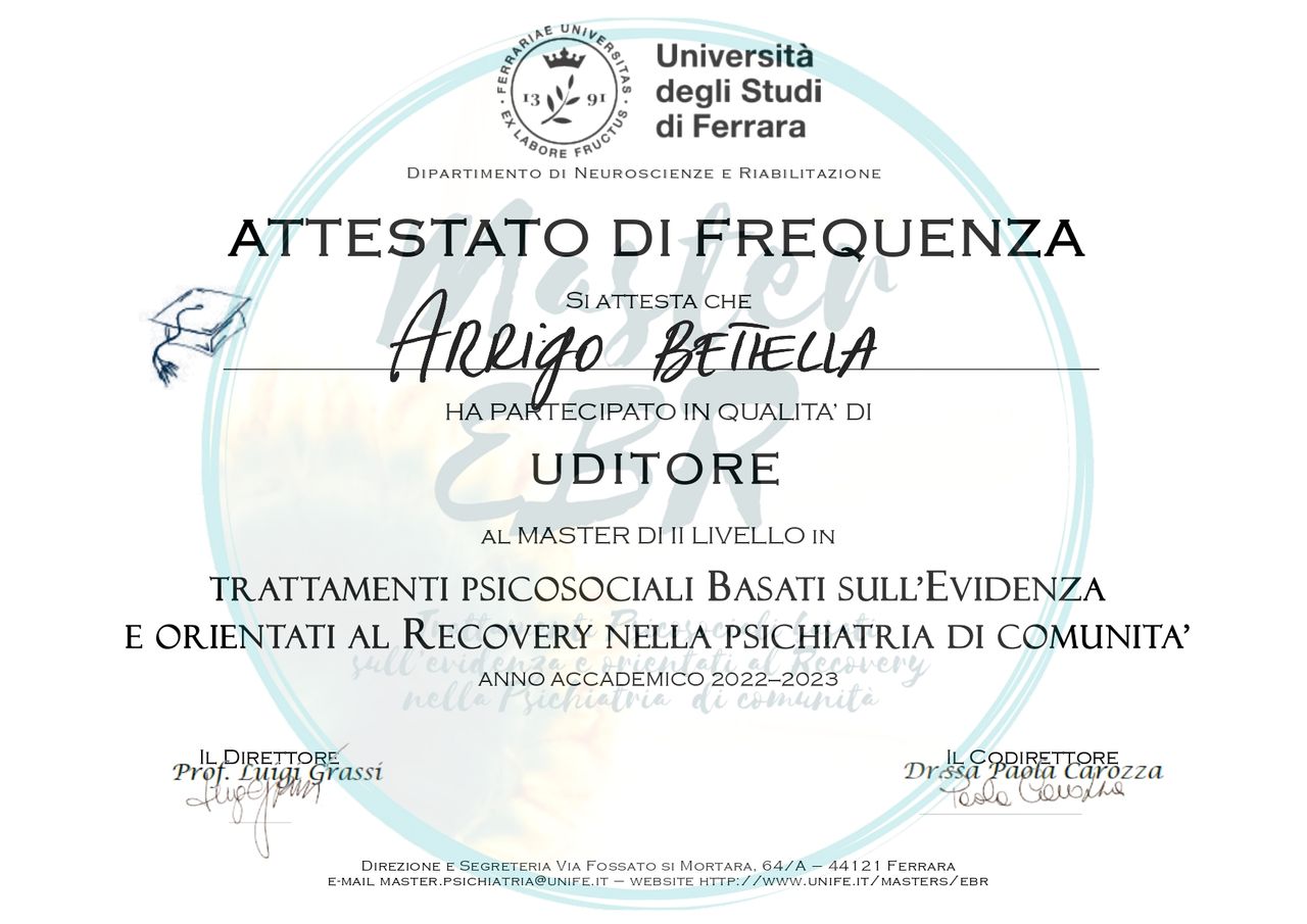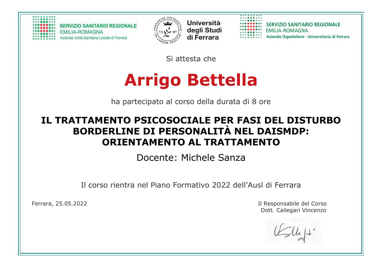 Da più di un anno ho avuto la fortuna di incontrare sul mio cammino il Dottore Arrigo Bettella, il quale mi ha accolto e “presa per mano” in un momento della mia vita molto difficile da affrontare, mi ha ascoltata, indirizzata e sostenuta sempre con molta professionalità e sensibilità è riuscito a rimettere insieme la mia testa e il mio corpo che purtroppo in quel periodo non riuscivano a comunicare e di conseguenza non riuscivo a riprendere in mano la mia vita.