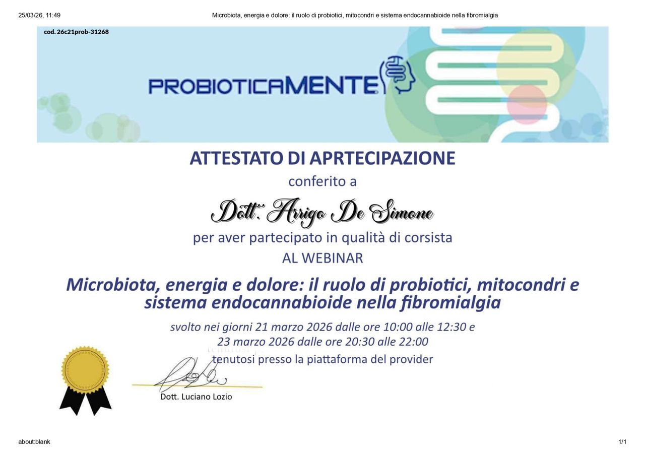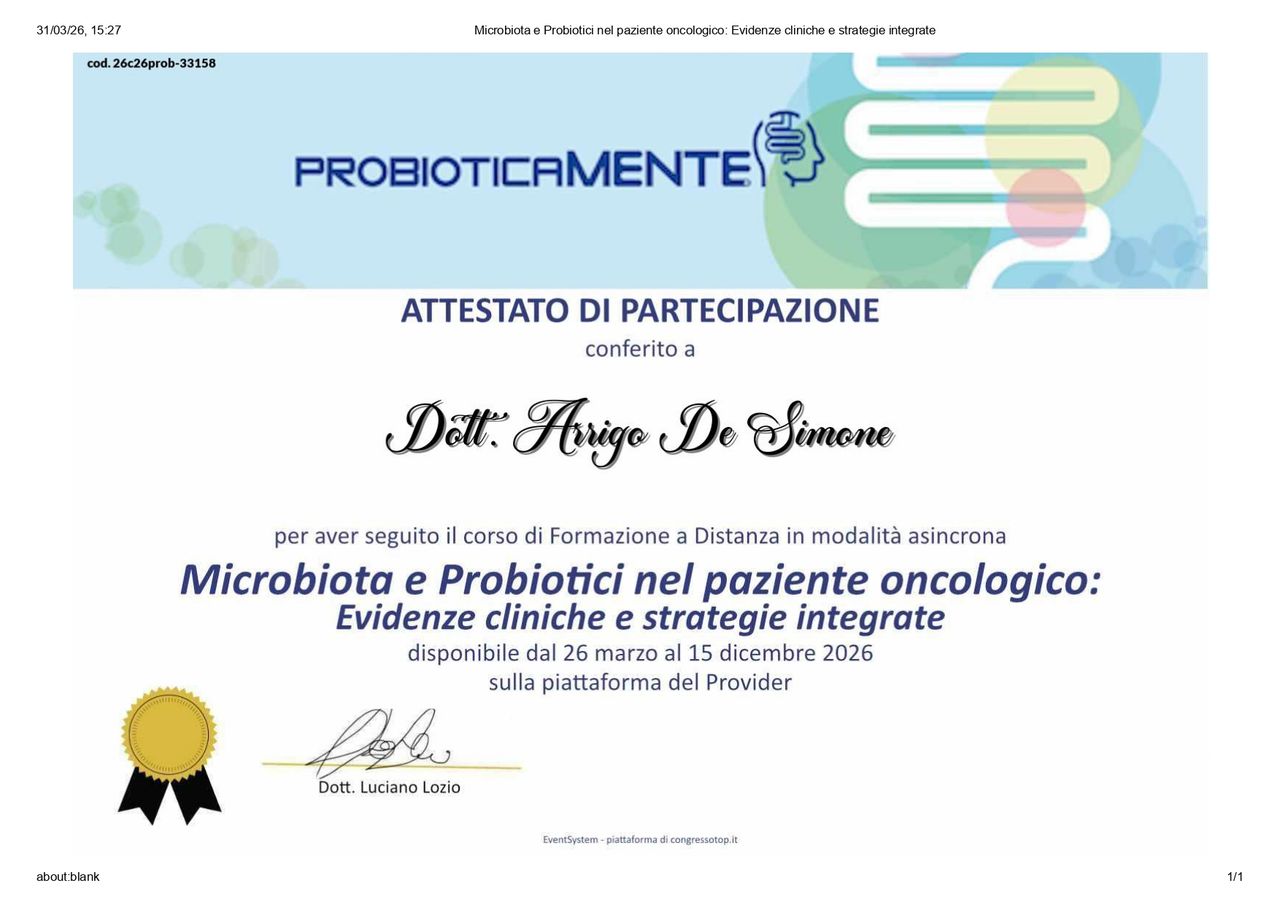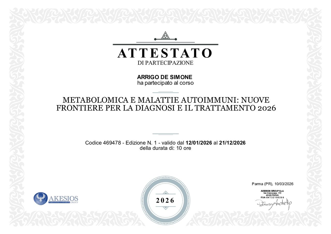 Assolutamente consigliato.• Dott. Arrigo De Simone • visita nutrizionistica •