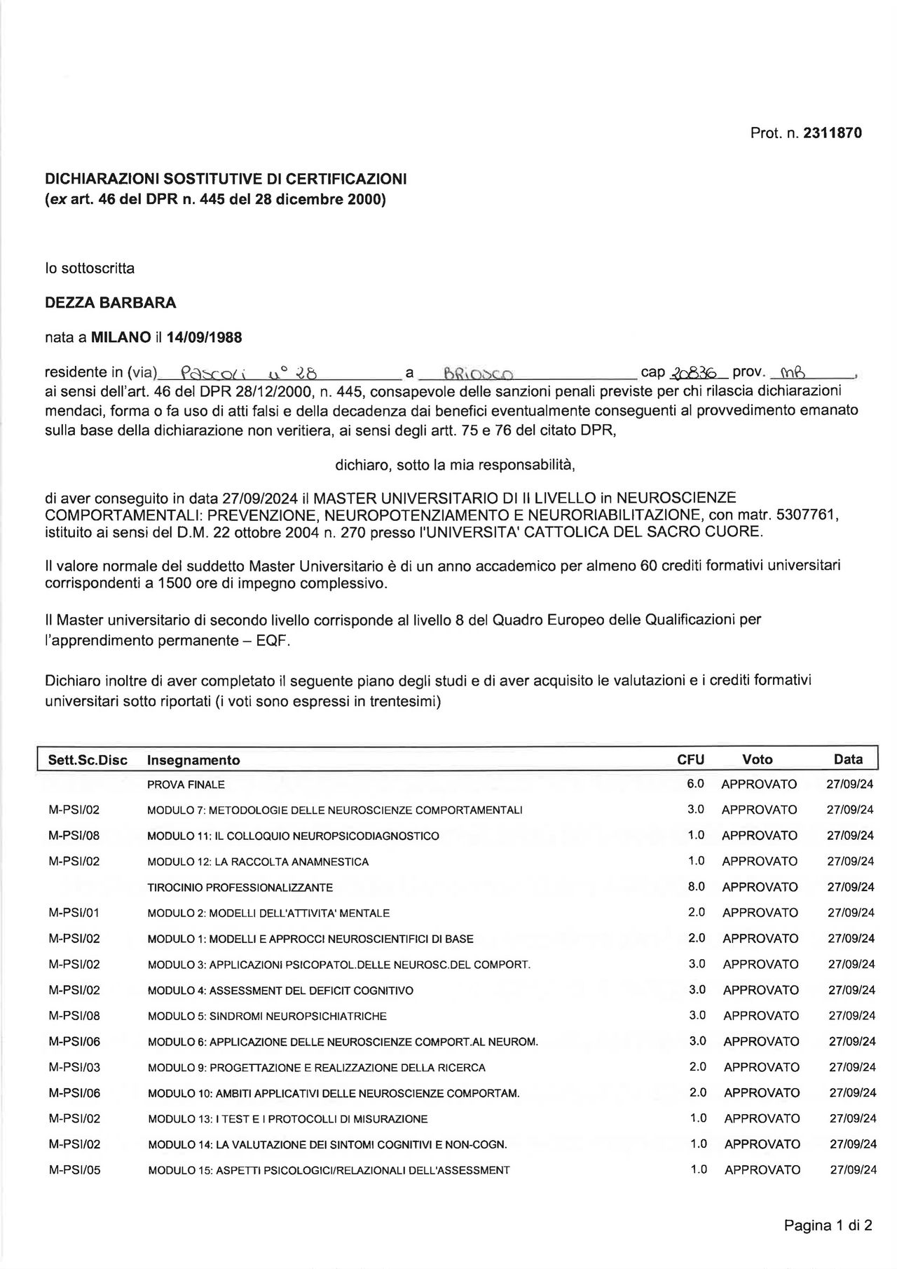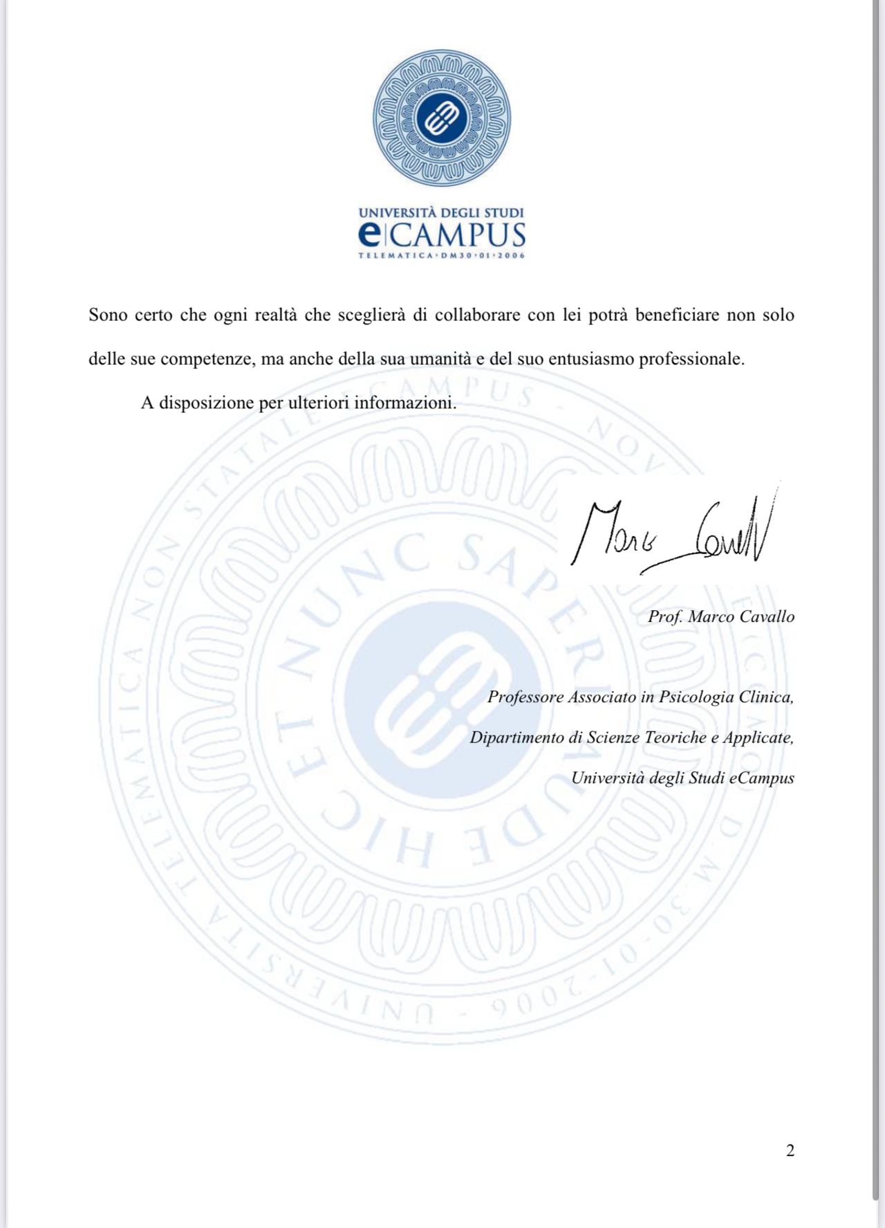 Sto frequentando la Scuola di Specializzazione per diventare Psicoterapeuta ad Orientamento Integrato (Specializzazione in Psicologia Clinica) presso l'Università Cattolica del Sacro Cuore di Milano.