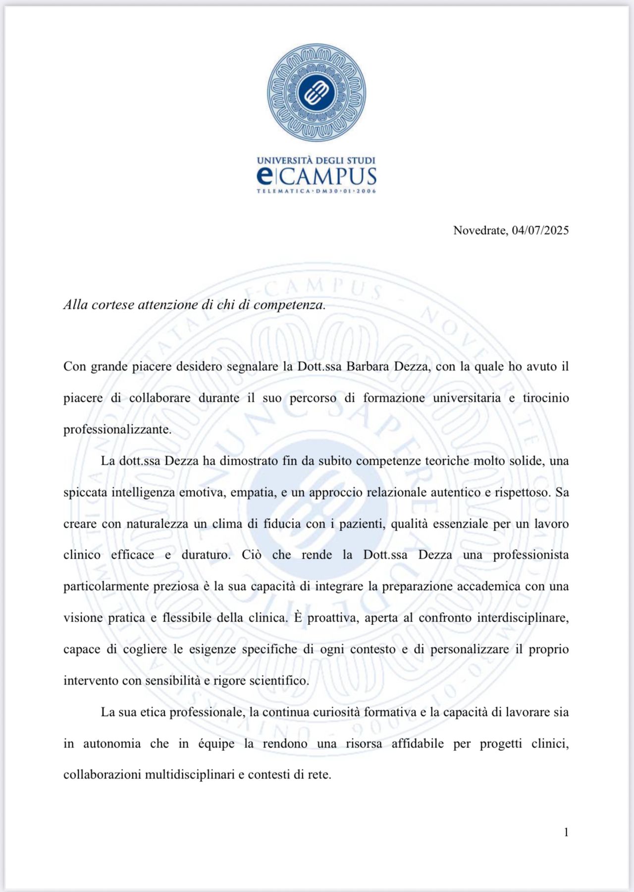 Consiglio di iniziare questo percorso con la dott.ssa Dezza!