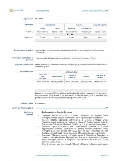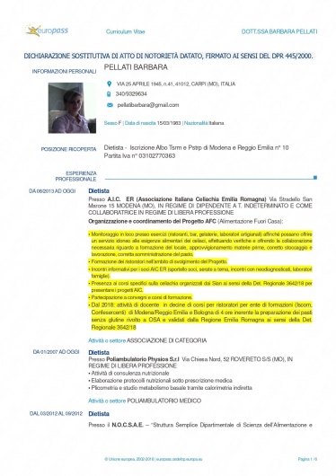 Sono iscritta al n. 10 dell'albo della professione sanitaria di dietista, presso l'Ordine TSRM PSTRP di Modena e Reggio Emilia.