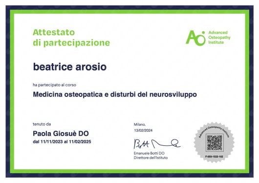 Sono un'osteopata laureata, con un percorso formativo quinquennale e una tesi sul dolore mestruale. Dopo la laurea, ho proseguito con un master specializzandomi in osteopatia applicata ai disturbi del neurosviluppo, approfondendo così le interazioni tra corpo e mente e il loro ruolo nel benessere globale della persona. Ho seguito inoltre corsi specifici di coppettazione e kinesio taping, che mi consentono di integrare queste metodiche nei miei trattamenti.
