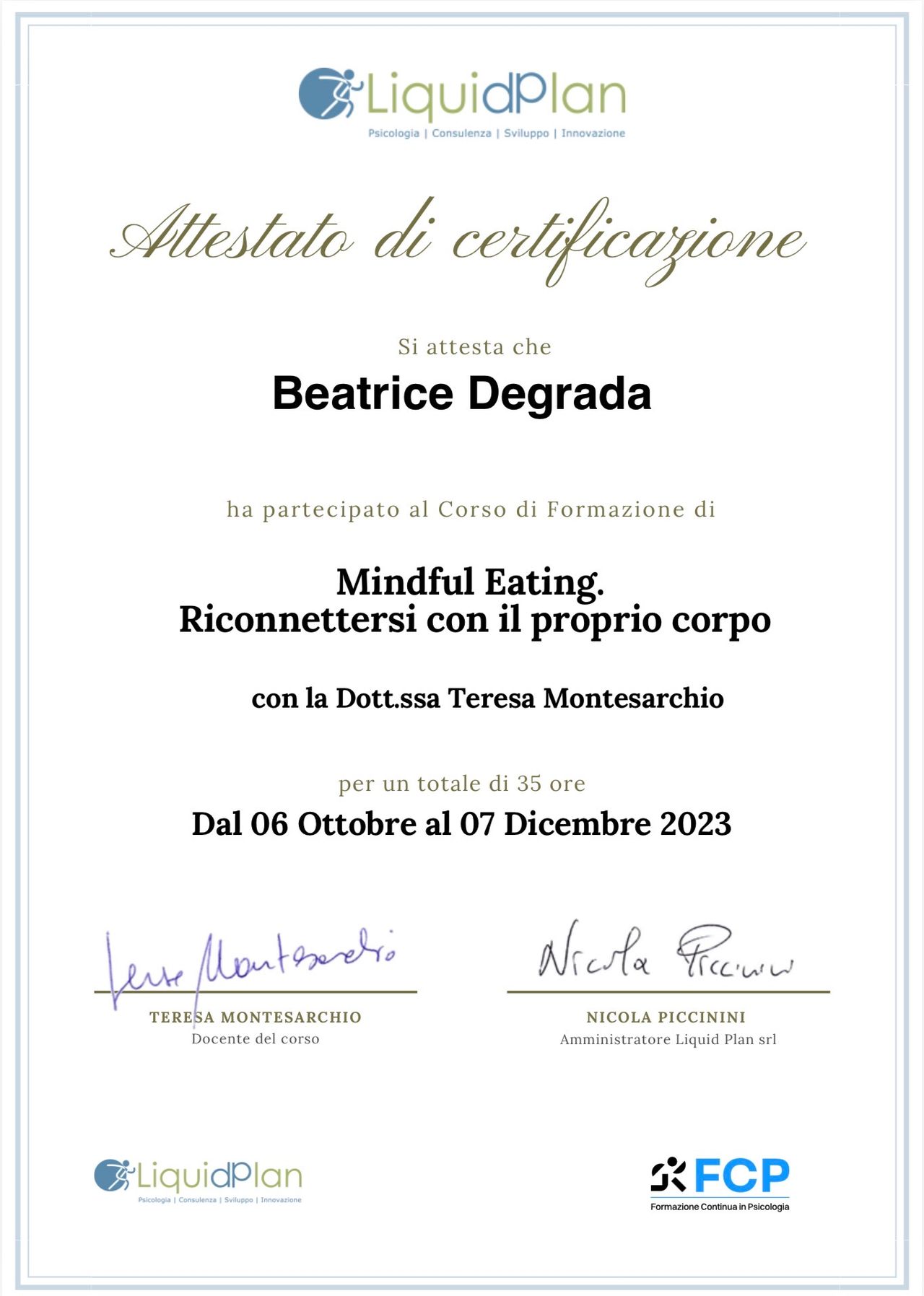 Mi presento: sono Beatrice Degrada, psicologa iscritta all'Ordine degli Psicologi della Lombardia (n. 28568).