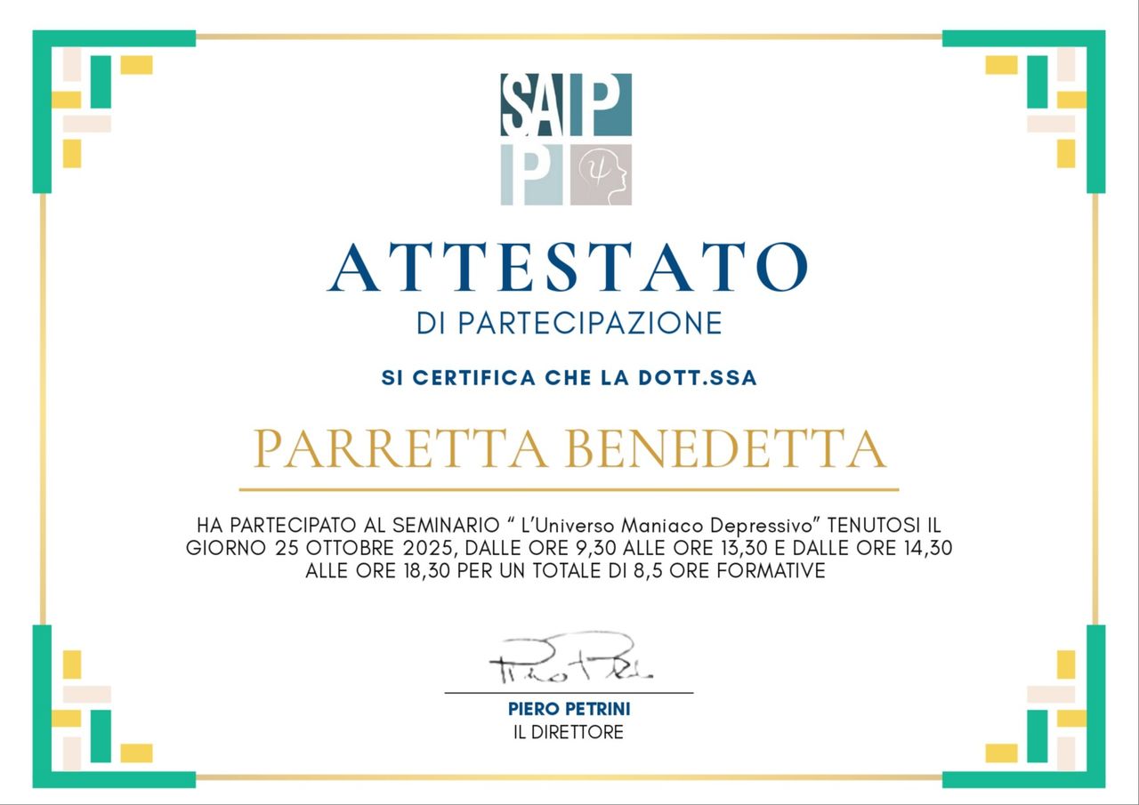 Sono la Dott.ssa Benedetta Parretta, Psicologa clinica ad orientamento Psicoanalitico-Psicodinamico, lavoro come libera professionista presso lo studio Kairos a Firenze.
