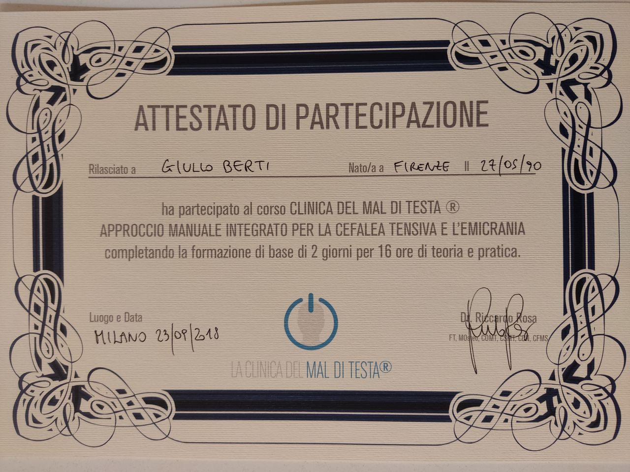 Fisioterapista specializzato nel TRATTAMENTO DELLA CEFALEA e nei DISTURBI TEMPOROMANDIBOLARI