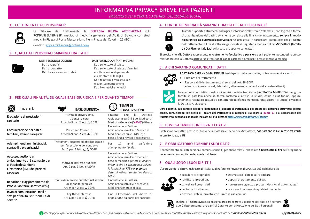 La reperibilità telefonica del medico è dalle 8 alle 10. Per assolute urgenze inviare sms.