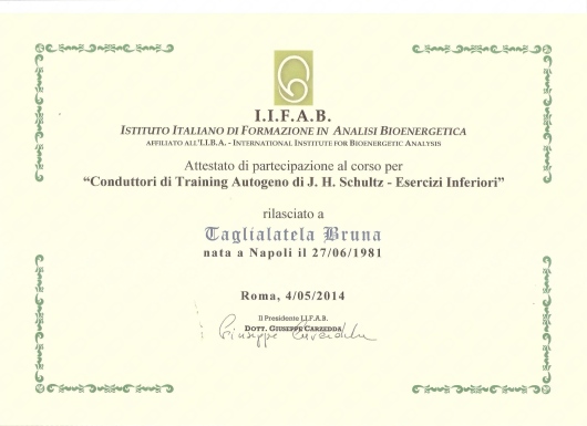 Sono conduttrice di training autogeno, capacità acquisita a seguito del corso dedicato all'apprendimento delle competenze per condurre gruppi.