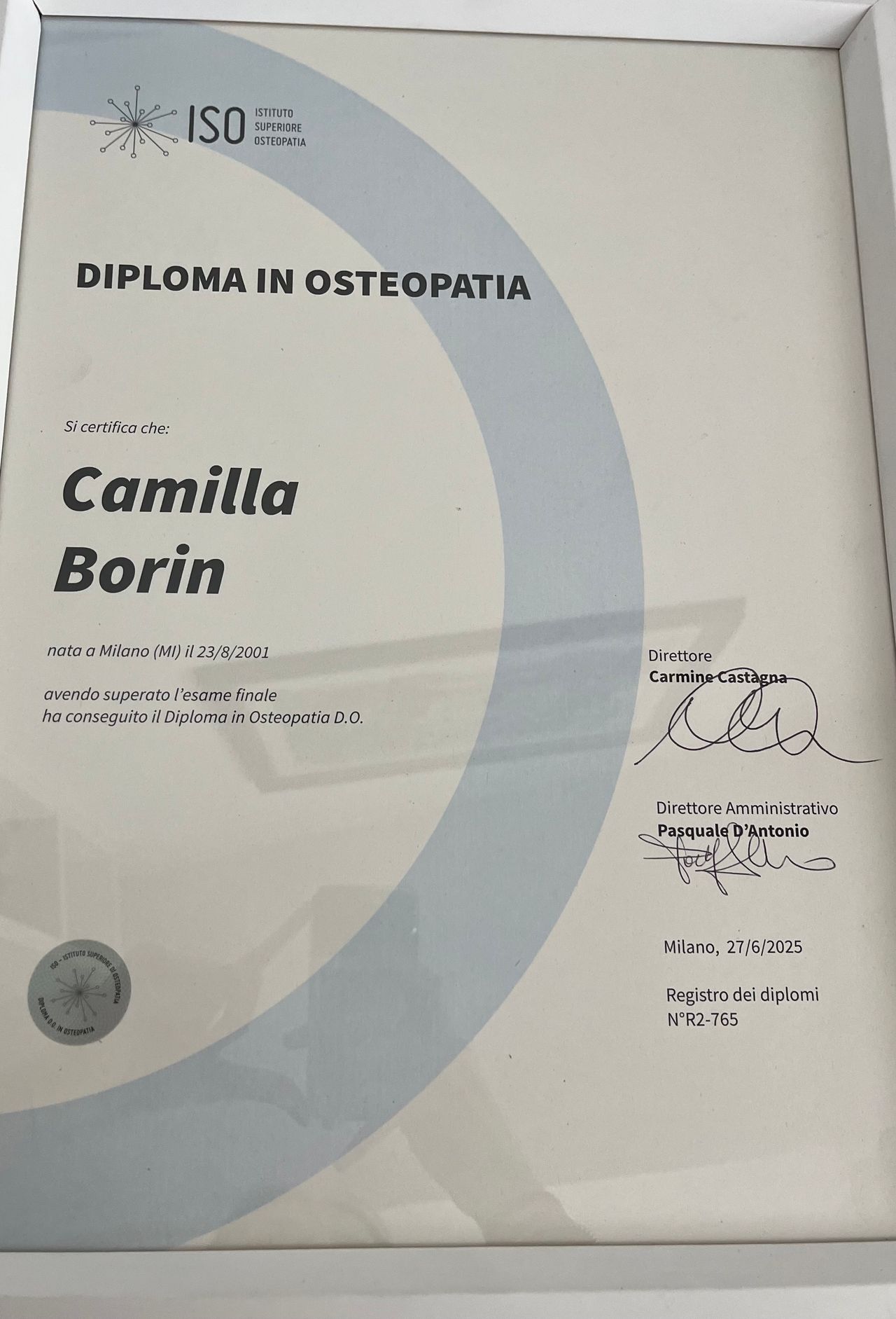 Sono una ragazza di 23 anni laureata in osteopatia presso la Buckinghamshire University. l'osteopatia è una pratica che permette l'interconnessione tra muscoli,ossa sistema nervoso ad altri apparati al fine di promuovere il benessere globale e il naturale processo di guarigione del paziente.